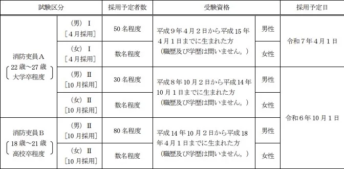 消防士の試験日程は大きく3つに分類されている